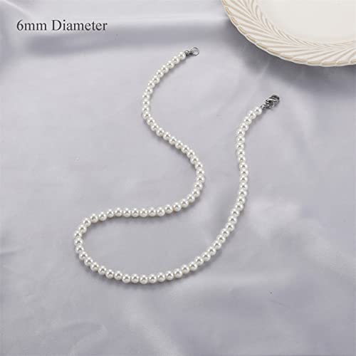 Pearl Necklace for Men,Mens Pearl Necklace,6mm 8mm White Pearl Choker Necklaces 16 18 20 22 24 inches 6