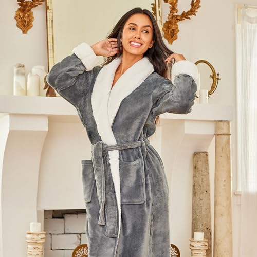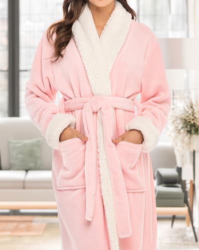 Alexander Del Rossa Women's Plush Sherpa Robe, Long Cozy Warm Bathrobe 5