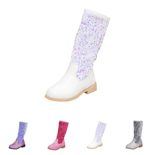 Girls Glitter Sequin Boots High Top Western Boots Sparkly Chunky 𝐋ow Heel Fashion Non-Slip Princess Dress Shoes 6