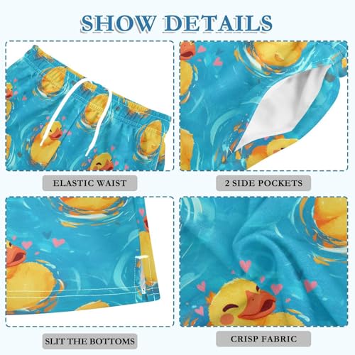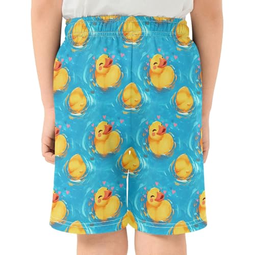 Boys Athletic Shorts with Pockets Cute Duck in Water Running Basketball Shorts for Youth Elastic Waist Size 7-8 4