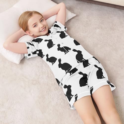 ALAZA Silhouette Of Rabbit Black White Pajamas Satin Pajama Set Short Sleeve Button Down Sleepwear 1