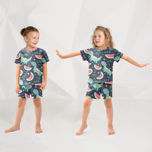 ALAZA Dinosaur Watermelon Blue Pajamas Short Sleeve 2 Piece Sleepwear Top and Bottom Pajama Set Unisex 6