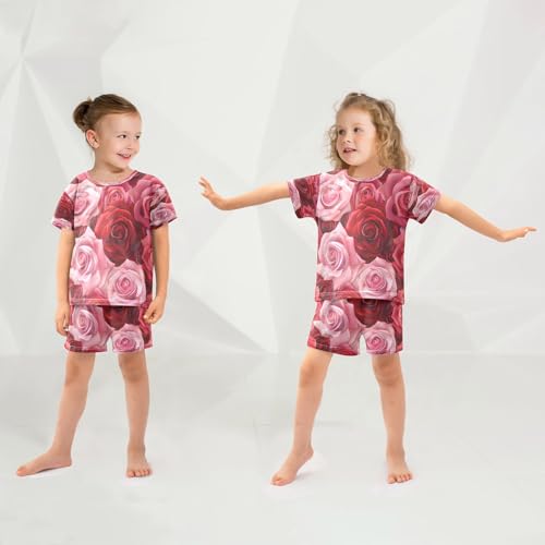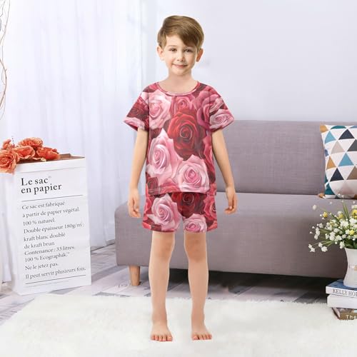 senya Short Sleeve Pajamas Sets Summer Cotton Sleepwear Red and Pink Roses 3