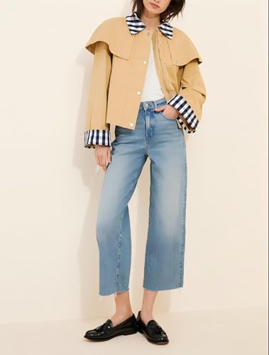 More information about Women’s Gingham Trim Cape Jacket Lightweight Cotton Cropped Trench Coat with Snap Button and Contrast Cuffs