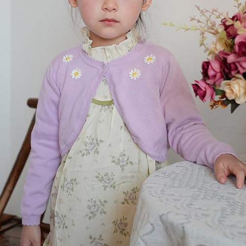 Girls Cotton Knitted Cardigan Kids Long Sleeve Open Front Bolero Shrug Flower Dress Cover Up Cropped Jacket 5