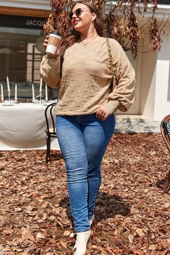HOT ! Plus Size Women's Light French Beige Textured Knit Solid Checkered Sweater