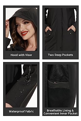 Fahsyee Raincoat Women, Rain Jacket Waterproof Coat Hooded Windbreaker Outdoor Long Active 5