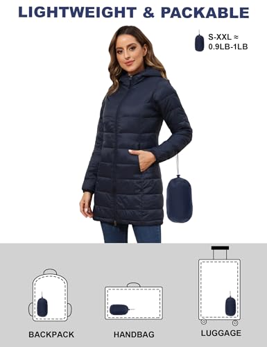 ROYAL MATRIX Women's Packable Puffer Coat, Regular and Plus Size Lightweight Puffer Coat Long Puffer Coat with Hood 6