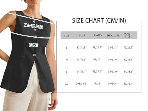Mina Self 2025 Womens Summer Long Linen Vest Sleeveless Lightweight Fully-Lined Single Breasted Casual Work Tops Pockets 5