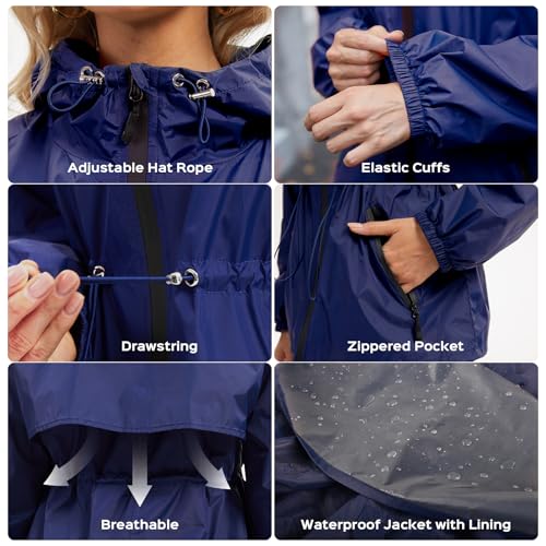 • 【Thoughtful Design Features】Adjustable waist drawstring for a flattering fit; Elastic cuffs to keep rain out; Two secure zippered pockets for essentials. Because staying dry shouldn't mean sacrificing style or convenience.