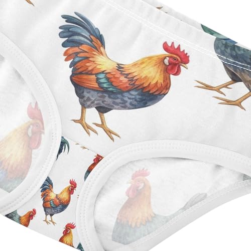 HOT ! Toddler Panties, Watercolor Roosters Hens White Girls Underwear Cotton, 2T–8 Years