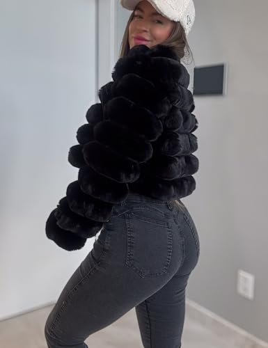 Arssm Womens Faux Fur Jacket Cropped Fluffy Long Sleeve Coat 2025 Winter Warm Shaggy Outwear 7