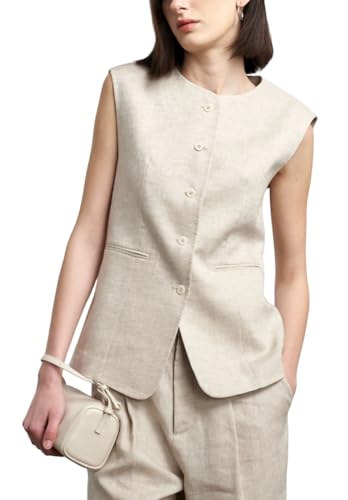 Women's Linen Suit Vest Single Breasted Office Casual Breathable Sleeveless Waistcoat 1