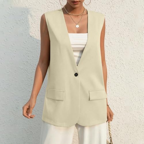 KIKX0DE Women Fall Fashion Sleeveless Blazer Jackets Lightweight Single Button Waistcoat Open Front Work Office Vest Top 6