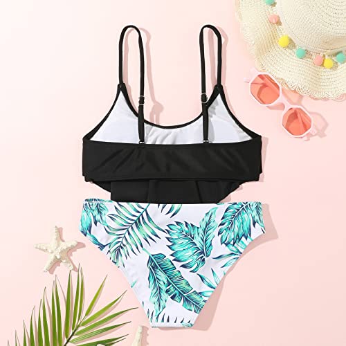 Girl's Swimsuit Two Piece Leaf Print Shorts for 7 to 14 Years Swimming Pool Hot Spring Bathing Suit Girls Size 7 1