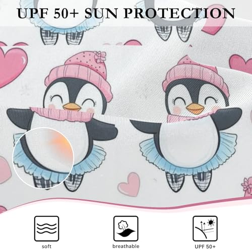 Cute Penguin and Pink Love Heart Girls Long Sleeve Swimsuit Rash Guard One Piece Bathing Suits Zipper 3-12T 5