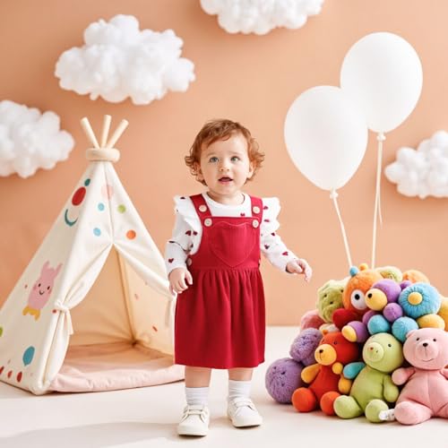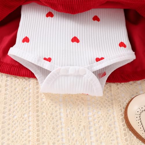 • Baby Girl Outfits Design: This baby girl clothes 2 pcs set includes a white ruffle long sleeve onesie with heart print, paired with a red fashionable adjustable baby shoulder strap dress that features buttons. Your baby will look absolutely adorable in this baby girl dress.