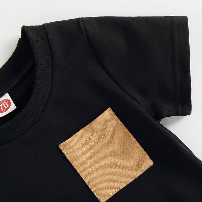 • Features - The T-shirt has short sleeve, crew neck, a pocket at the front, pair with a pair of elastic waist shorts which have stripe print. The summer outfit makes baby boys more adorable
