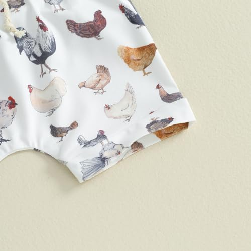 • CUTE DESIGN: Cute baby boy clothes set, baby boy t-shirt with rooster print, short sleeves and round neck design. Baby boy shorts with pockets and elastic waist design ensure comfort and fit