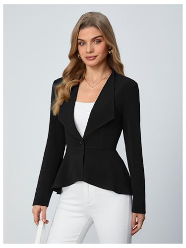 Milumia Women's Casual Work Peplum Ruffle Hem Lapel Long Sleeve Blazer Jacket with Padded Shoulder X-Large Black 1