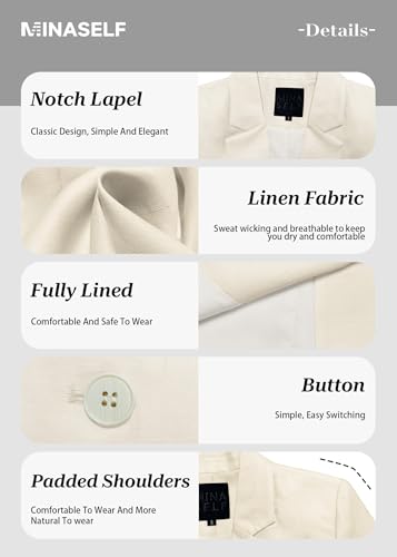 Mina Self Linen Blazer for Women 2025 Summer - Full-Lined Oversized Lightweight Casual Work Business Fashion Trendy Pockets 4