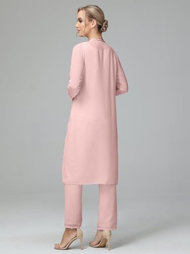 3 Pieces Long Sleeves Mother of The Bride Pants Suits with Jacket Chiffon Formal Evening Dress 4