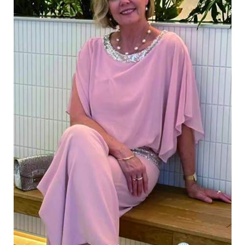 More information about ZOCAVIA Women's Elegant Chiffon 2 Piece Sparkly Sequin Crewneck Batwing Blouses Tops Flowy Wide Leg Pant Wedding Party Outfit