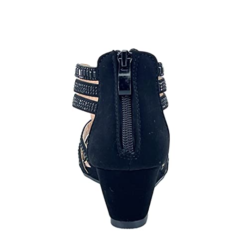 ABSOLEX Girl's Ankle Strap Rhinestone Dressy Low Heel Wedge Pump Sandal 6