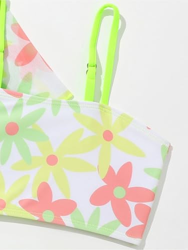 Kids Girls 3 Pcs Swim Cover Up Sets Floral Short Sleeve Kimono Bikini Bra with Brief 5