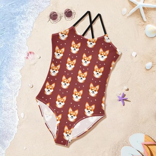 Girl's One Piece Swimsuit Corgi Face Cute Cartoon Beach Bathing Swimwear 1