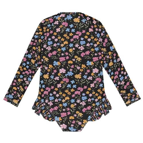 ALAZA Blue Orange Blossom Flower Girls One Piece Swimsuit Long Sleeve Rash Guard Swimsuits UV 50+ Swimwear Zipper 6