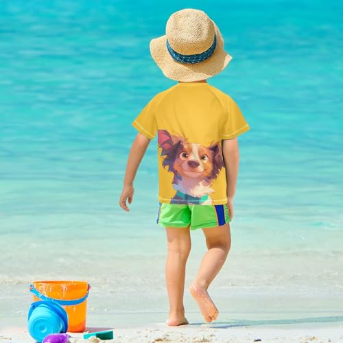 Cartoon Dog Yellow Kids Bathing Suit UV Protection Basketball Shirt Swimwear Beach Tops 3T 5