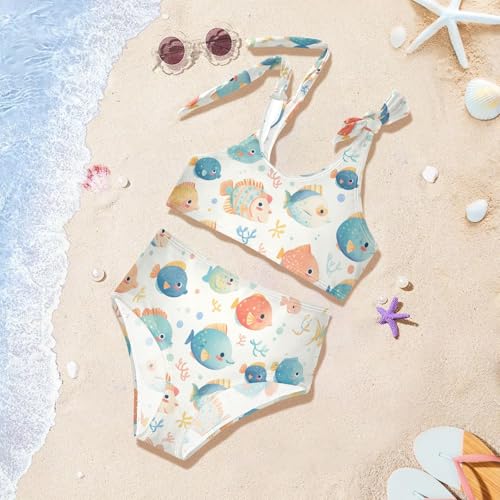 Puffer Hawaiian Fish and Seaweed Girl 2 Pieces Kids Bikini Set Scoop Neck Swimsuits Swimwear Cute Shoulder Strap 2