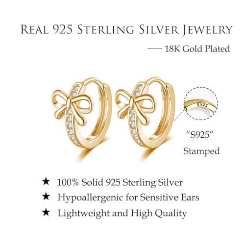 Reffeer Solid 925 Sterling Silver CZ Bow Hoop Earrings Ribbon for Women Teen Girls Bowknot Hoop Earrings Huggie 4