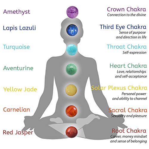 • CHAKRA STONES - The bracelet is compiled of 7 different energy balancing stones. Starting from the root chakra and ending at the crown - red jasper, carnelian, yellow jade, aventurine, turquoise, lapis lazuli and amethyst. For stones' significance please refer to the product images.