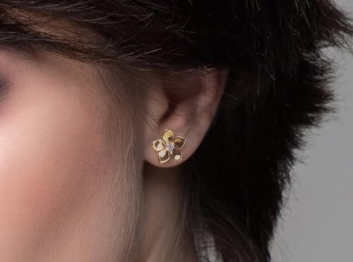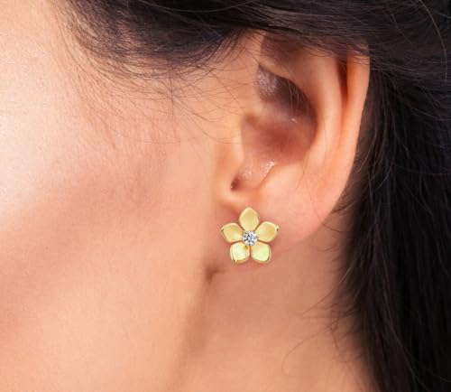 Princess Collection - "Beauty in Full Bloom" - 12.7 mm (0.41 Carat/Pair) Cubic Zirconia 22K Gold-Plated Stud Earrings For Sensitive Ears 5