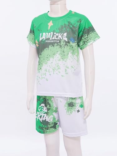 TiaoBug Boys Athletic Shorts Shirt Set Kids Breathable Summer Clothes Raglan Sleeve T-shirt and Shorts Set Green 9-10 Years 6