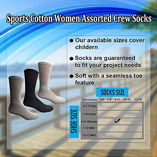 • 60 PAIRS OF WOMENS COTTON ASSORTED CREW SOCKS:: Each bulk pack of socks includes 60 pairs of casual cotton blend socks. Choose from crew socks, ankle socks, tube socks or warm thermal socks. Available in Women's Sizes. With 60 pairs, you will never have to worry about running out of athletic socks again.
