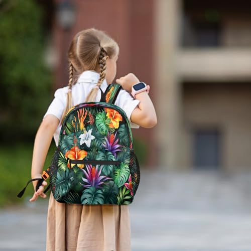 HOT ! Colorful Palm Leaves Flowers Kids Backpack for Boys Girls, Waterproof Lightweight Toddler School Bag with Chest Strap, Small Travel Book Bag Preschool Kindergarten Backpack