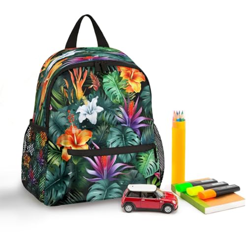 More information about Colorful Palm Leaves Flowers Kids Backpack for Boys Girls, Waterproof Lightweight Toddler School Bag with Chest Strap, Small Travel Book Bag Preschool Kindergarten Backpack
