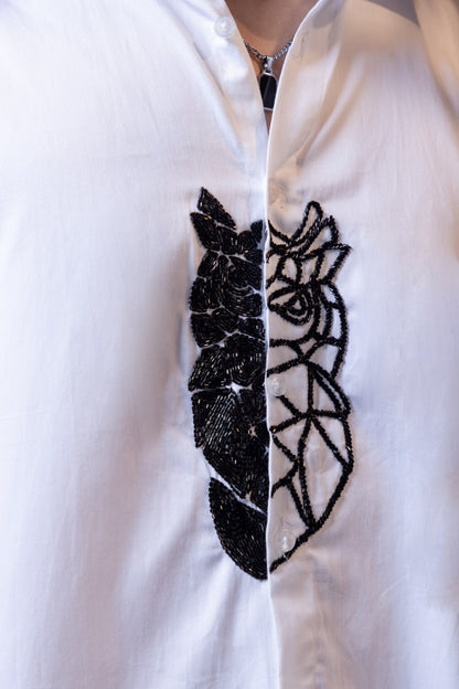"OWL" EMBROIDERED ON A WHITE SHIRT S