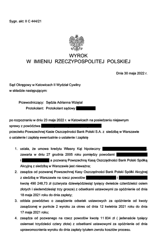 Dysponujemy bogatą bazą orzeczeń w sprawach frankowych i wypracowanym na przestrzeni ostatnich lat własnym bezcennym know-how w tym zakresie.